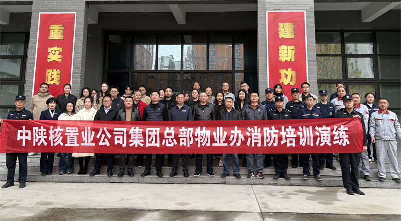为迎接第34个全国消防日,深入践行“预防为主,生命至上”的消防安全理念,切实提升职工火灾应对与自救互救能力,2025年11月7日下午,中陕核置业公司牵头,联合集团总部机关、地调院、核盛公司、陕核传媒、核鑫公司等单位,共同组织开展了一场模拟火灾疏散演练与逃生技能培训活动。中陕核置业公司副总经理皇甫春光现场指挥并全程参与。