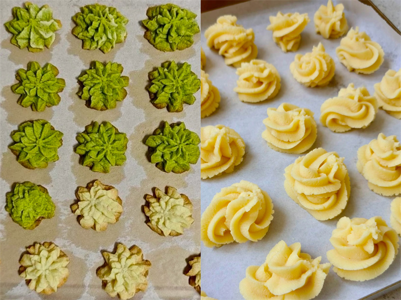 活动现场,工作人员化身“烘焙达人”,分工协作、有条不紊,细致完成称量、搅拌、裱花等步骤,抹茶绿与奶白色的花朵曲奇生胚整齐排列。烤箱升温后,浓郁香气弥漫,为园区增添了温馨烟火气。